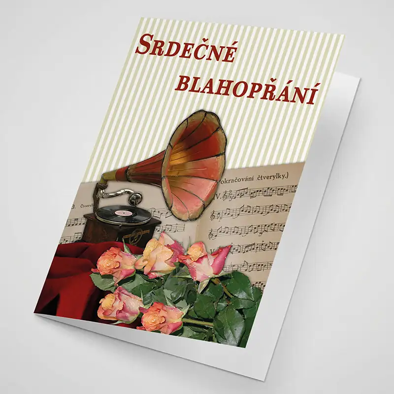 Otevírací blahopřání, potažené lesklým laminem, výběr z více rozměrů, možnost doplnit či změnit text uvnitř blahopřání.