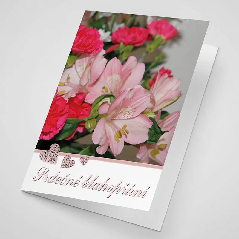 Otevírací blahopřání, potažené lesklým laminem, výběr z více rozměrů, možnost doplnit či změnit text uvnitř blahopřání.