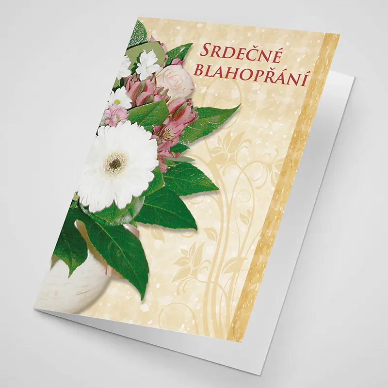 Otevírací blahopřání, potažené lesklým laminem, výběr z více rozměrů, možnost doplnit či změnit text uvnitř blahopřání.