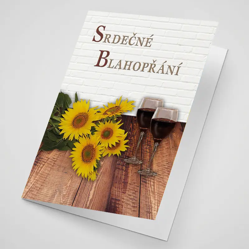 Otevírací blahopřání, potažené lesklým laminem, výběr z více rozměrů, možnost doplnit či změnit text uvnitř blahopřání.