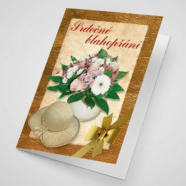 Otevírací blahopřání, potažené lesklým laminem, výběr z více rozměrů, možnost doplnit či změnit text uvnitř blahopřání.