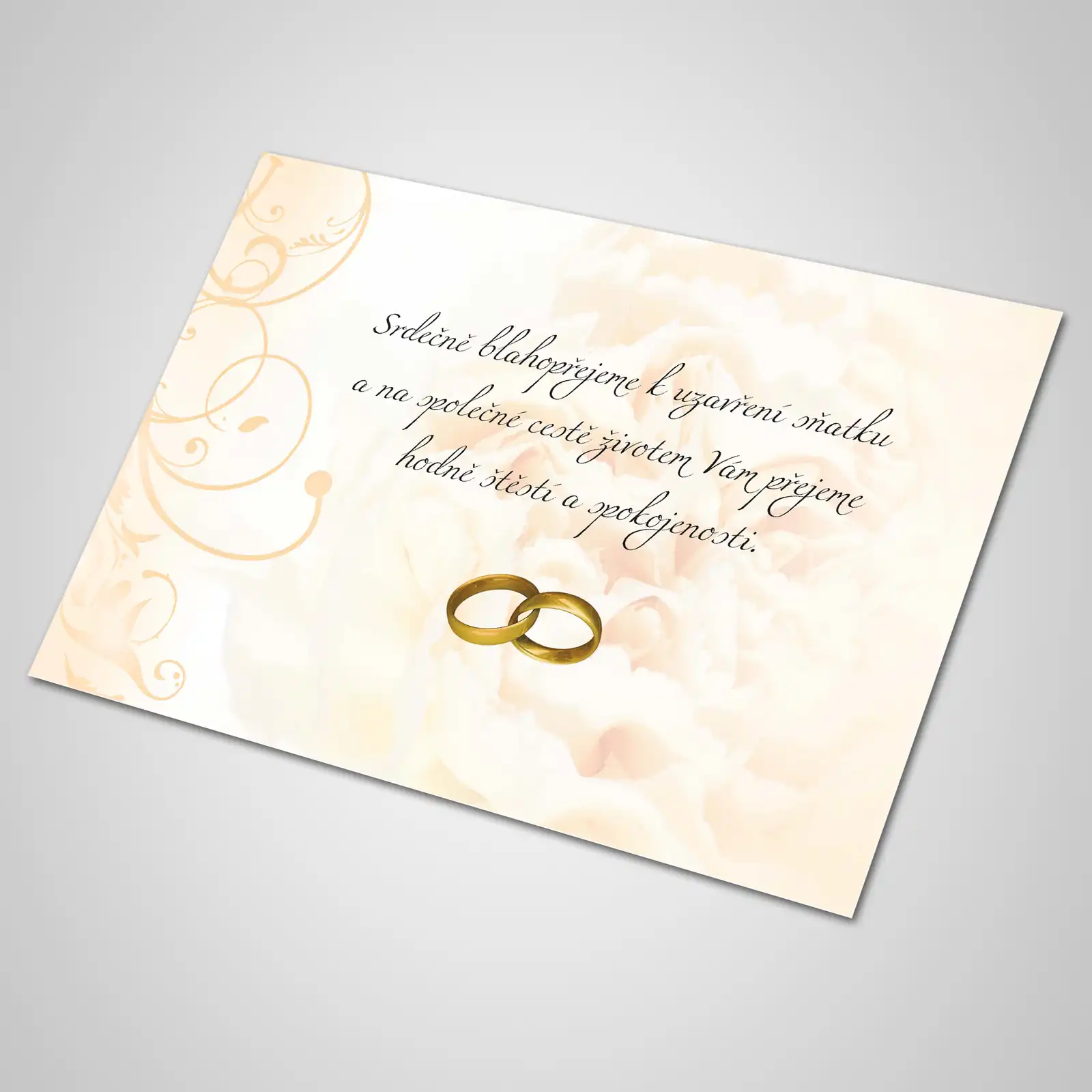 Blahopřání k svatbě, kartička ve formátu A6, možnost doplnit či změnit text na blahopřání. K blahopřání lze objednat i obálky.