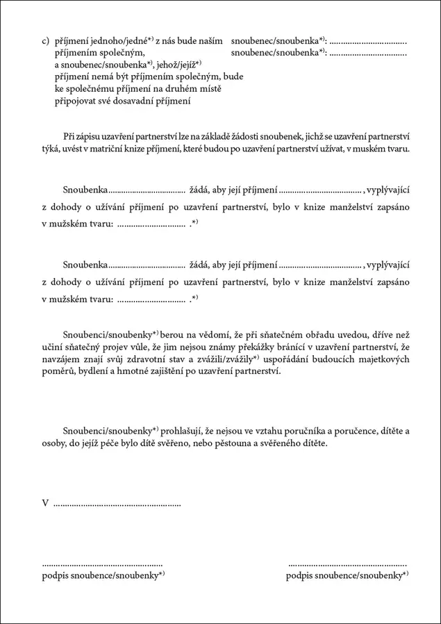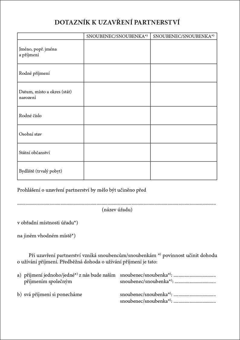 Dotazník k uzavření partnerství
