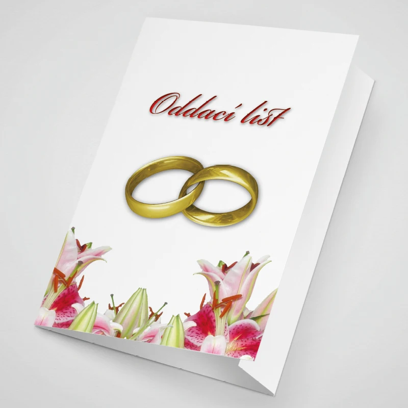Pevný papírový obal A5 na oddací list s jednou klopou. Zdarma lze doplnit název obce či města a znak.