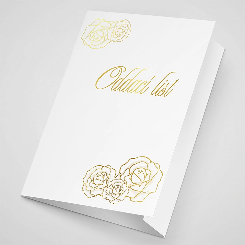 Pevný papírový obal A5 na oddací list se zlatotiskem, s jednou klopou. Na obal lze doplnit název obce či města.