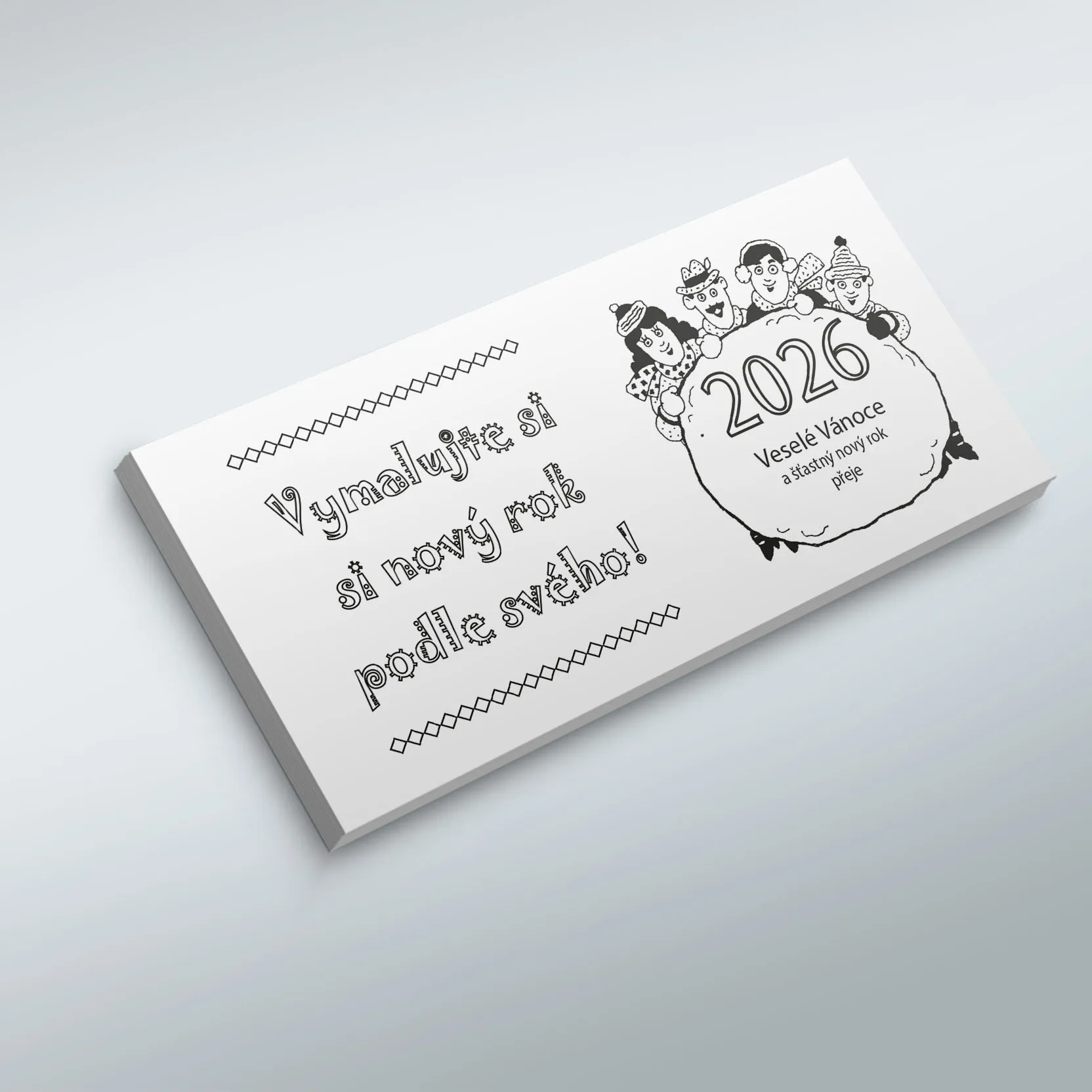 Novoročenky mají formát do podlouhlé obálky, jsou tištěny na kvalitní ofsetový papír 250g.