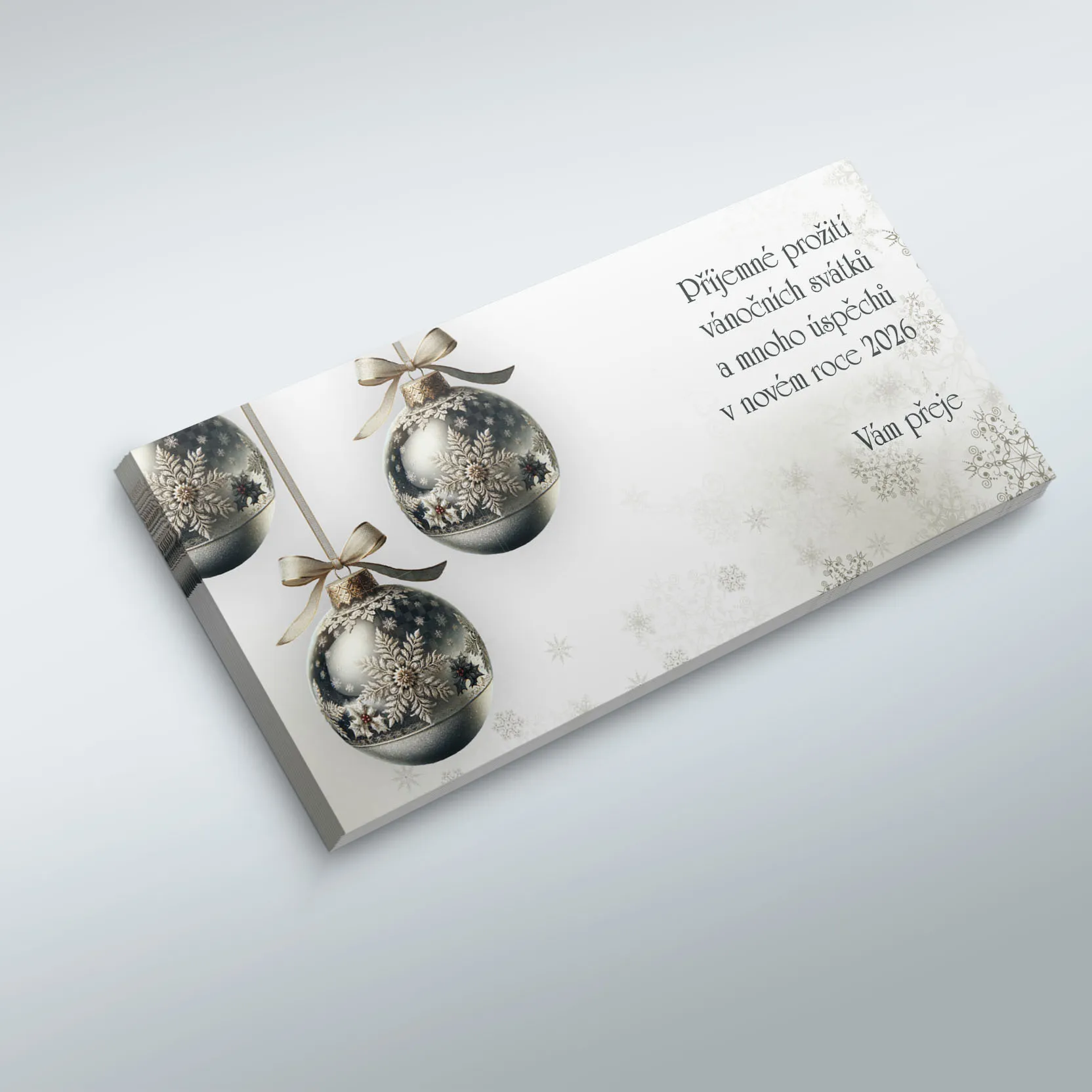 Novoročenky mají formát do podlouhlé obálky, jsou tištěny na kvalitní ofsetový papír 250g.