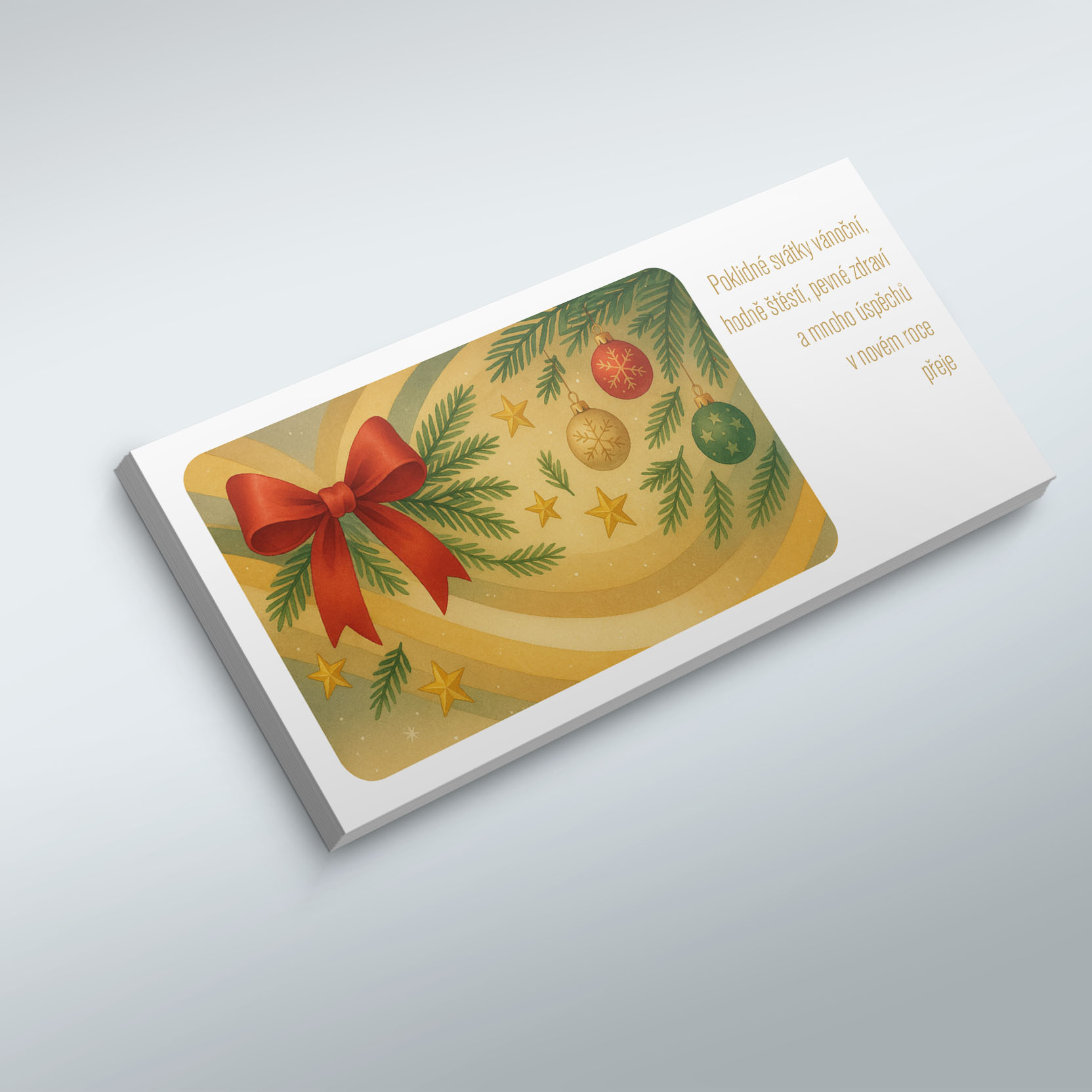 Novoročenky mají formát do podlouhlé obálky, jsou tištěny na kvalitní ofsetový papír 250g.