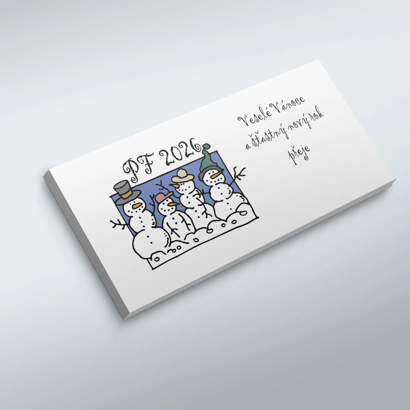 Novoročenky mají formát do podlouhlé obálky, jsou tištěny na kvalitní ofsetový papír 250g.