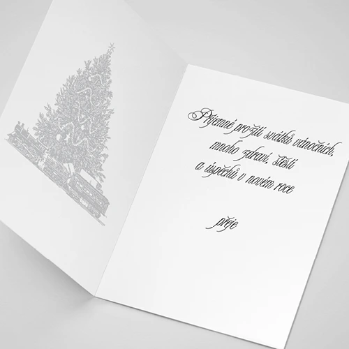 Otevírací novoročenky mají formát do klasické obálky, jsou tištěny na kvalitní ofsetový papír 250g. Text lze doplnit či zcela změnit.