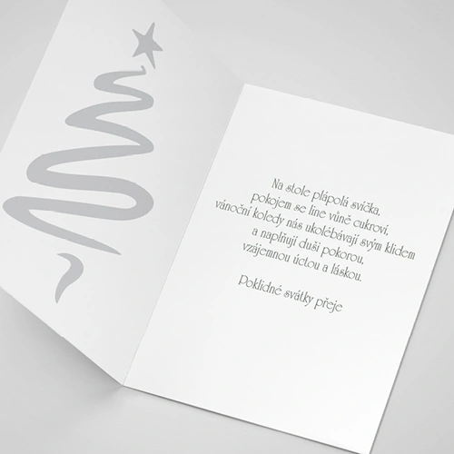 Otevírací novoročenky mají formát do klasické obálky, jsou tištěny na kvalitní ofsetový papír 250g. Text lze doplnit či zcela změnit.