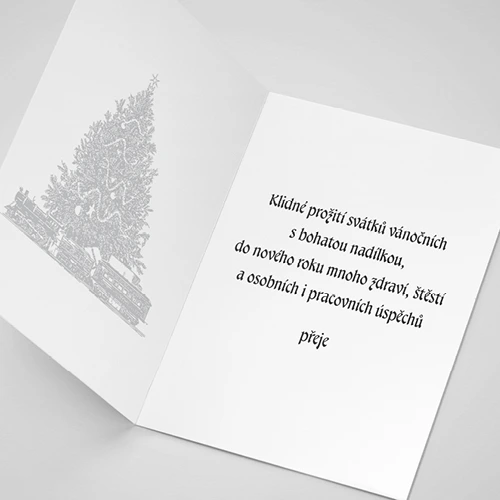 Otevírací novoročenky mají formát do klasické obálky, jsou tištěny na kvalitní ofsetový papír 250g. Text lze doplnit či zcela změnit.