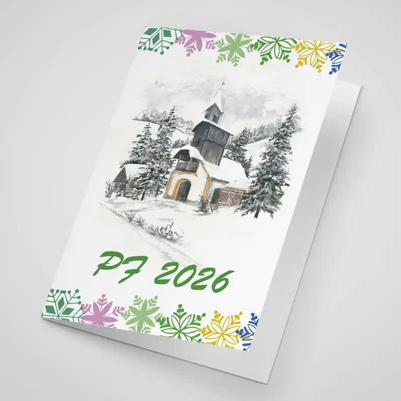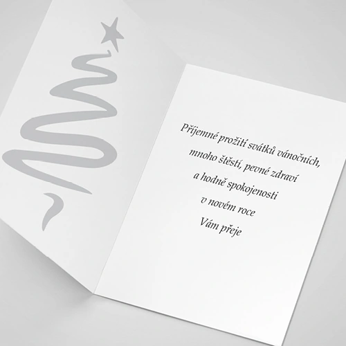 Otevírací novoročenky mají formát do klasické obálky, jsou tištěny na kvalitní ofsetový papír 250g. Text lze doplnit či zcela změnit.