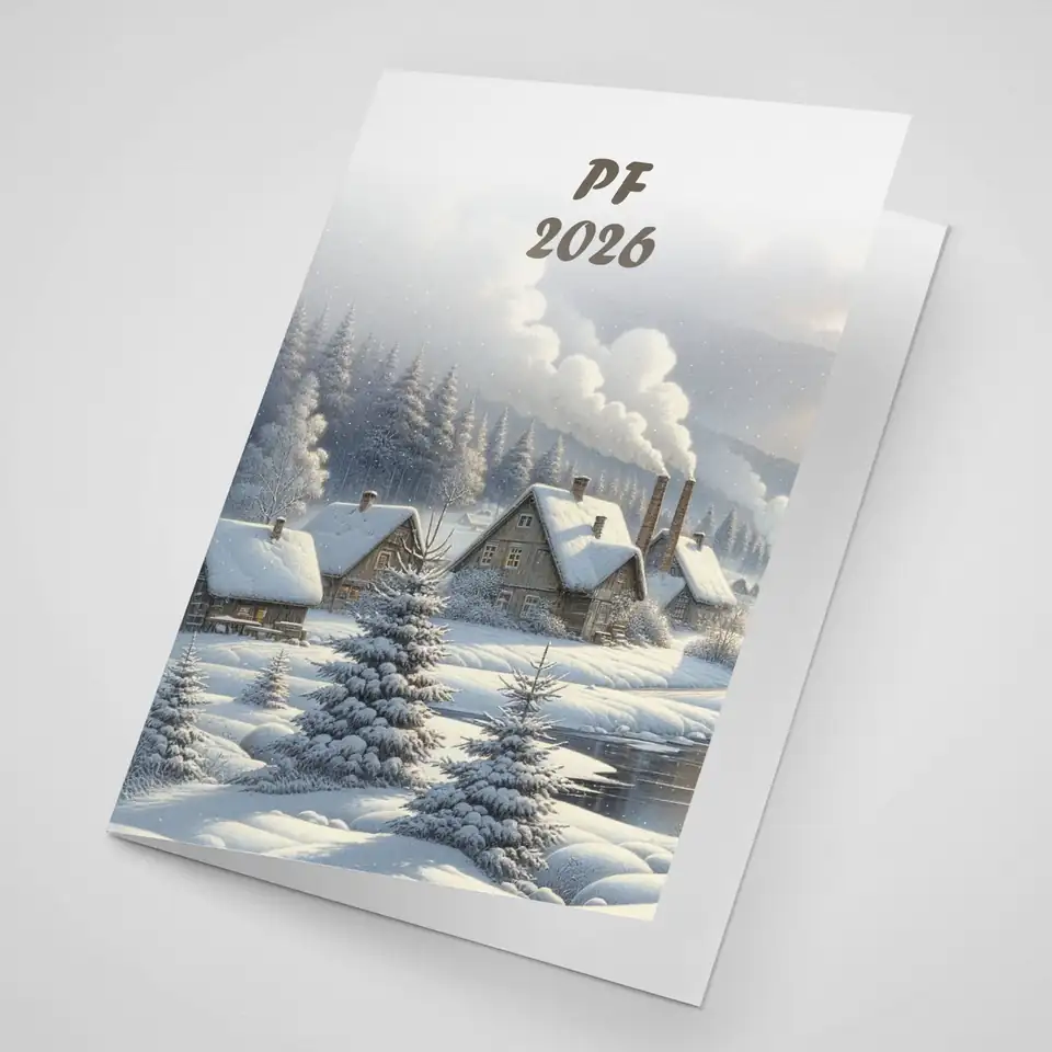 Otevírací novoročenky mají formát do klasické obálky, jsou tištěny na kvalitní ofsetový papír 250g. Text lze doplnit či zcela změnit.
