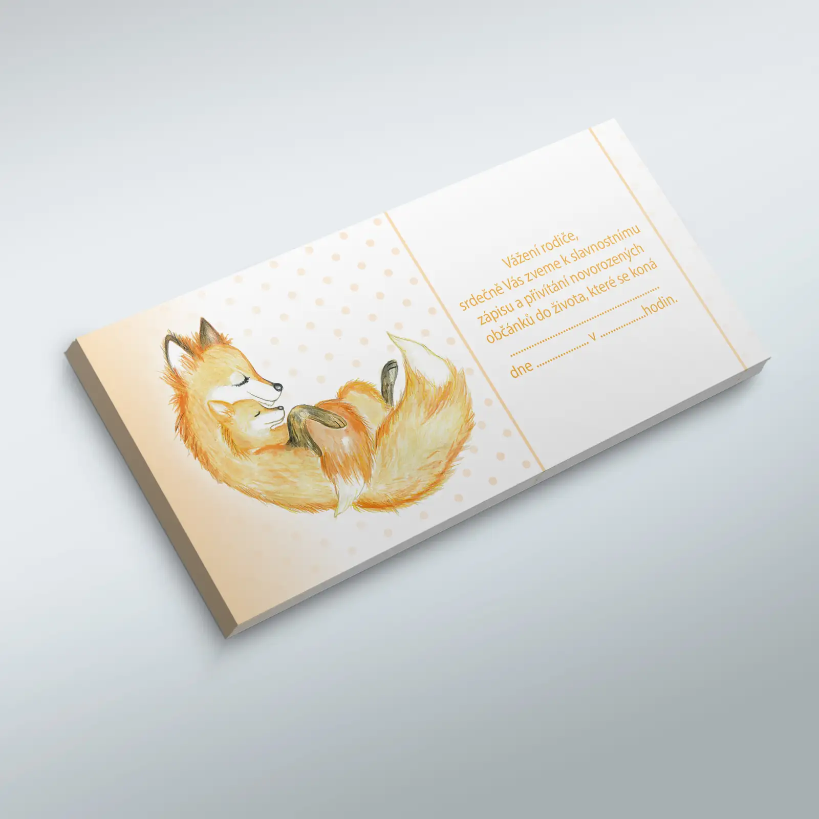 Pozvánky jsou tištěny na kvalitní 250g ofsetový papír, formát do podlouhlé obálky. Možnost doplnit či změnit text pozvánky.