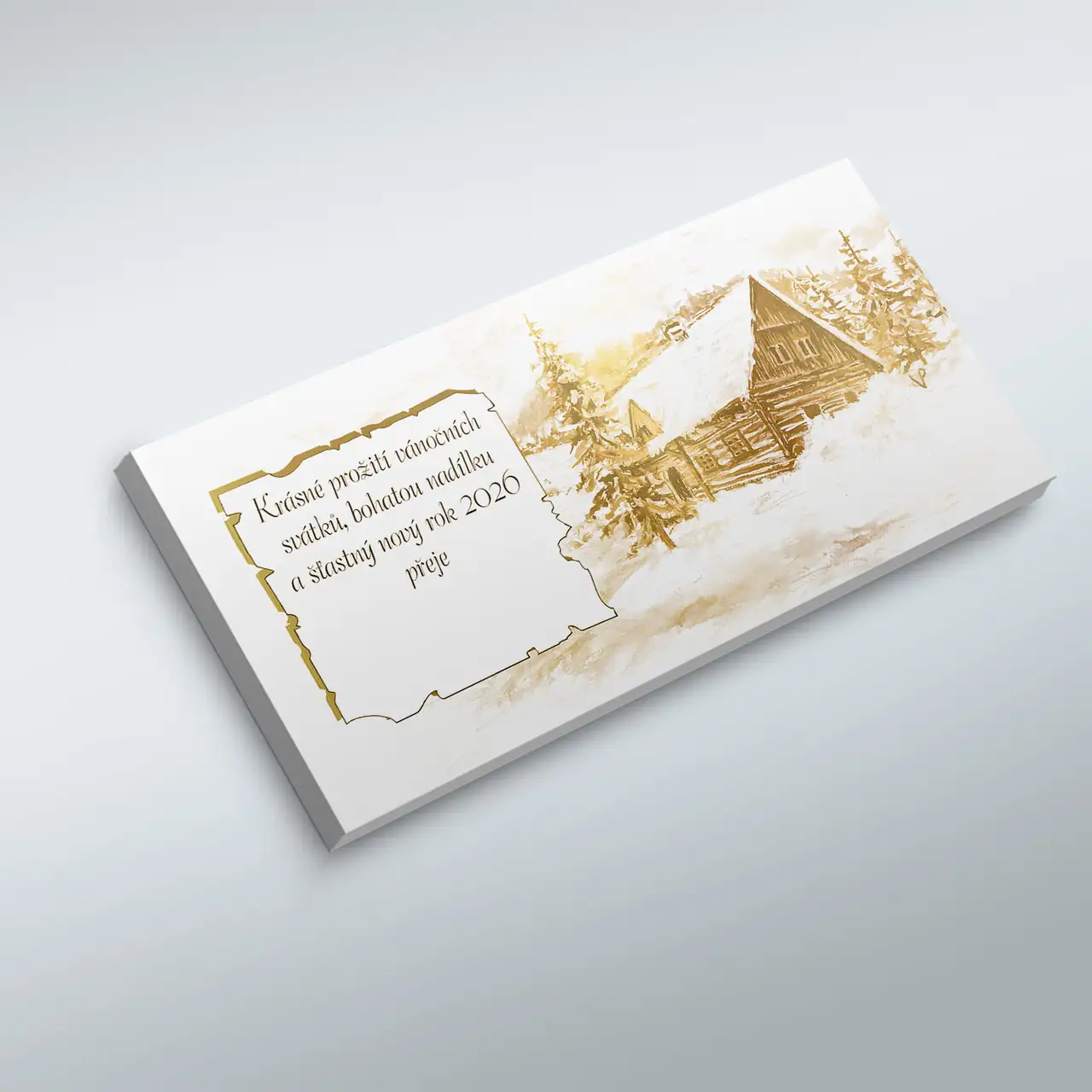 Novoročenky mají formát do podlouhlé obálky, jsou tištěny na kvalitní křídový papír. Text lze doplnit či zcela změnit.