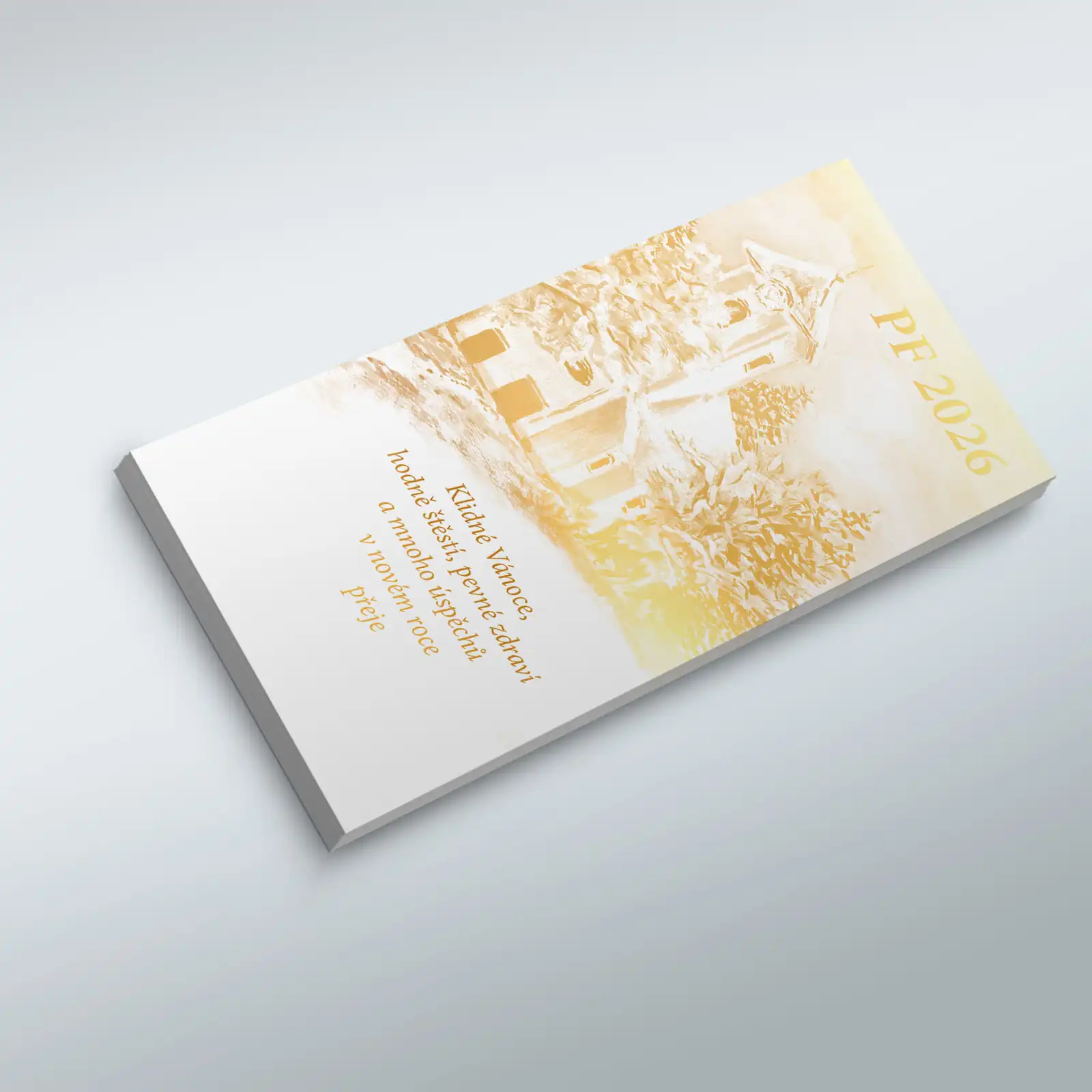 Novoročenky mají formát do podlouhlé obálky, jsou tištěny na kvalitní křídový papír. Text lze doplnit či zcela změnit.