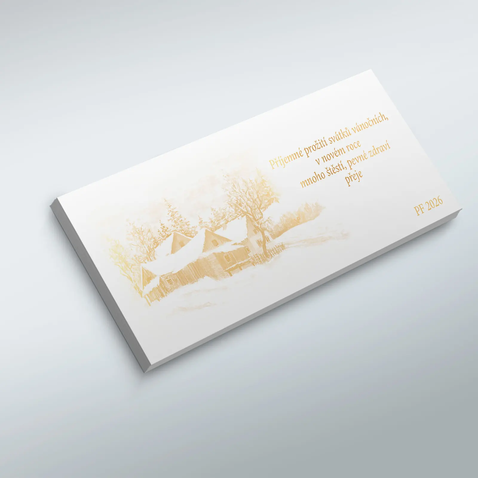 Novoročenky mají formát do podlouhlé obálky, jsou tištěny na kvalitní křídový papír. Text lze doplnit či zcela změnit.