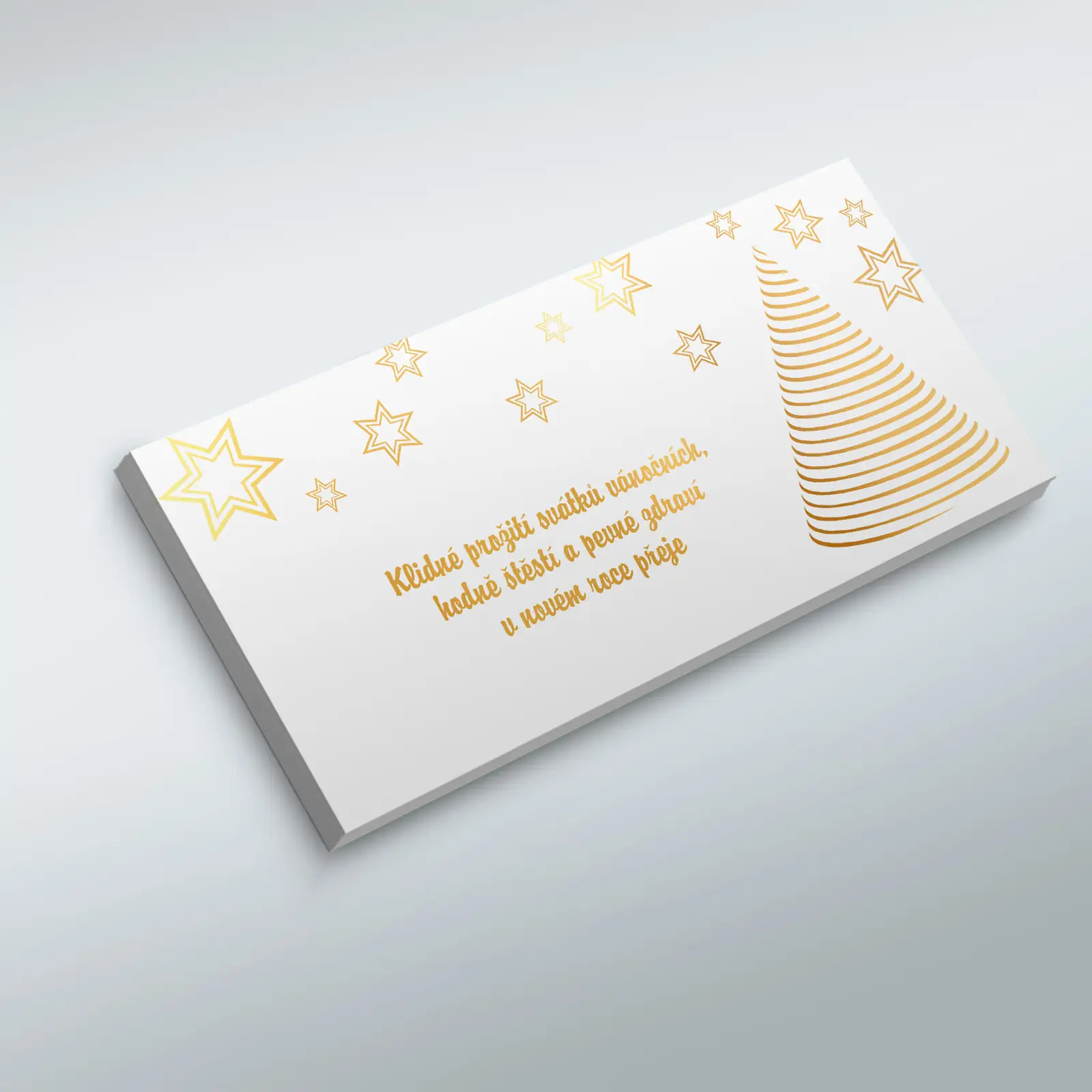 Novoročenky mají formát do podlouhlé obálky, jsou tištěny na kvalitní křídový papír. Text lze doplnit či zcela změnit.