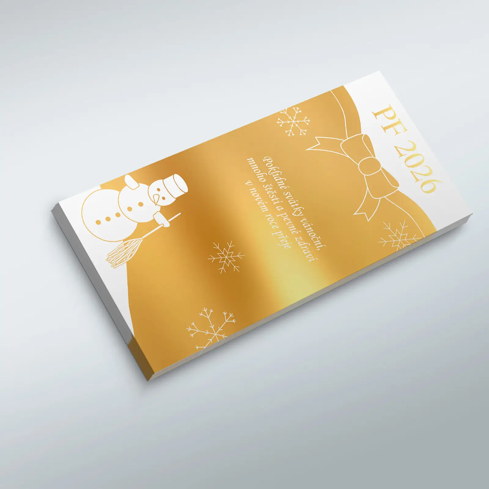 Novoročenky mají formát do podlouhlé obálky, jsou tištěny na kvalitní křídový papír. Text lze doplnit či zcela změnit.